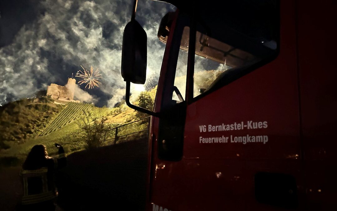 Wie auch in den Jahren zuvor stellte die Feuerwehr Longkamp mit dem TLF und vielen weiteren Feuerwehren aus der Verbandsgemeinde den Brandschutz während des Feuerwerks auf dem Weinfest der Mittelmosel sicher.